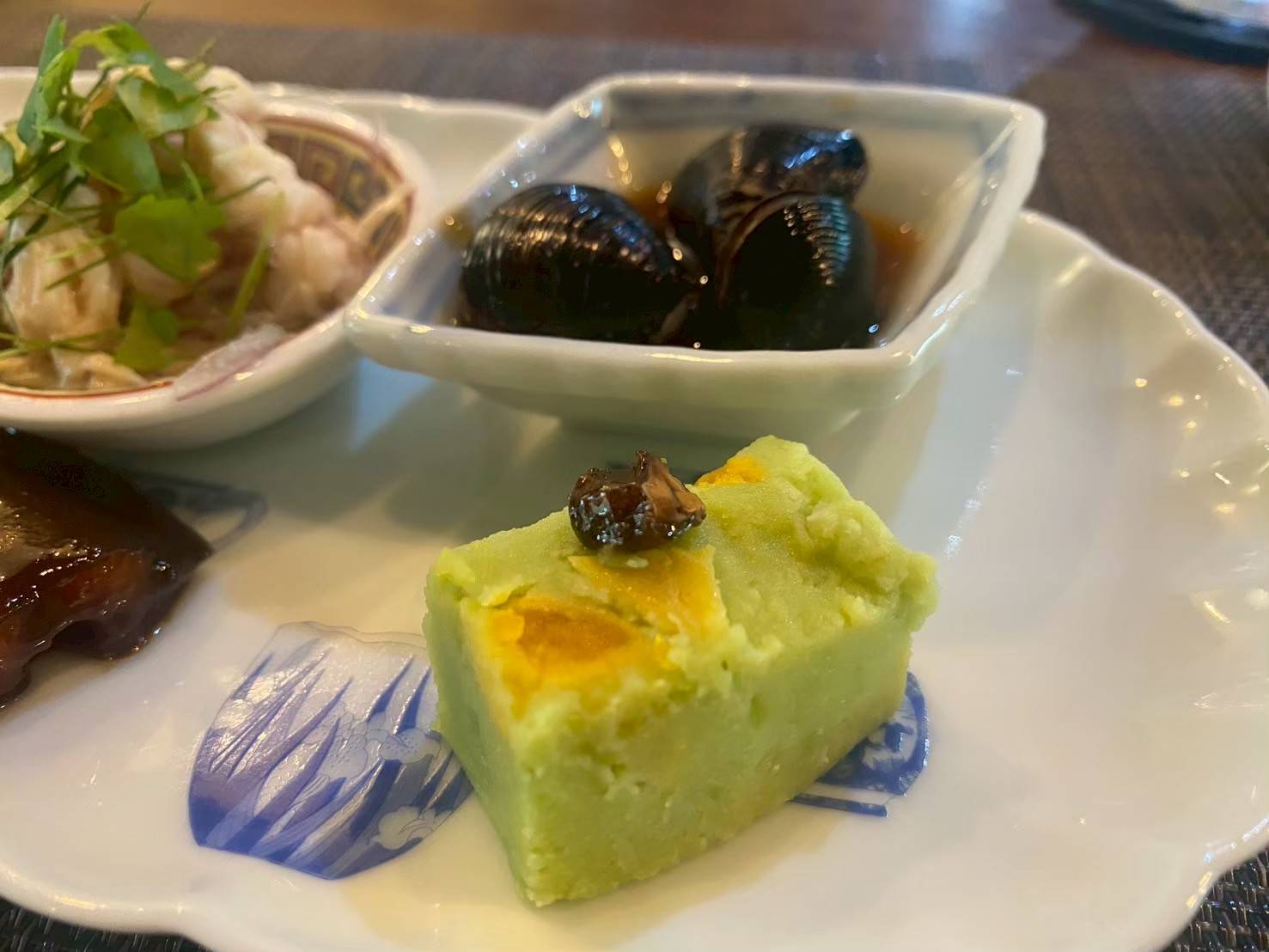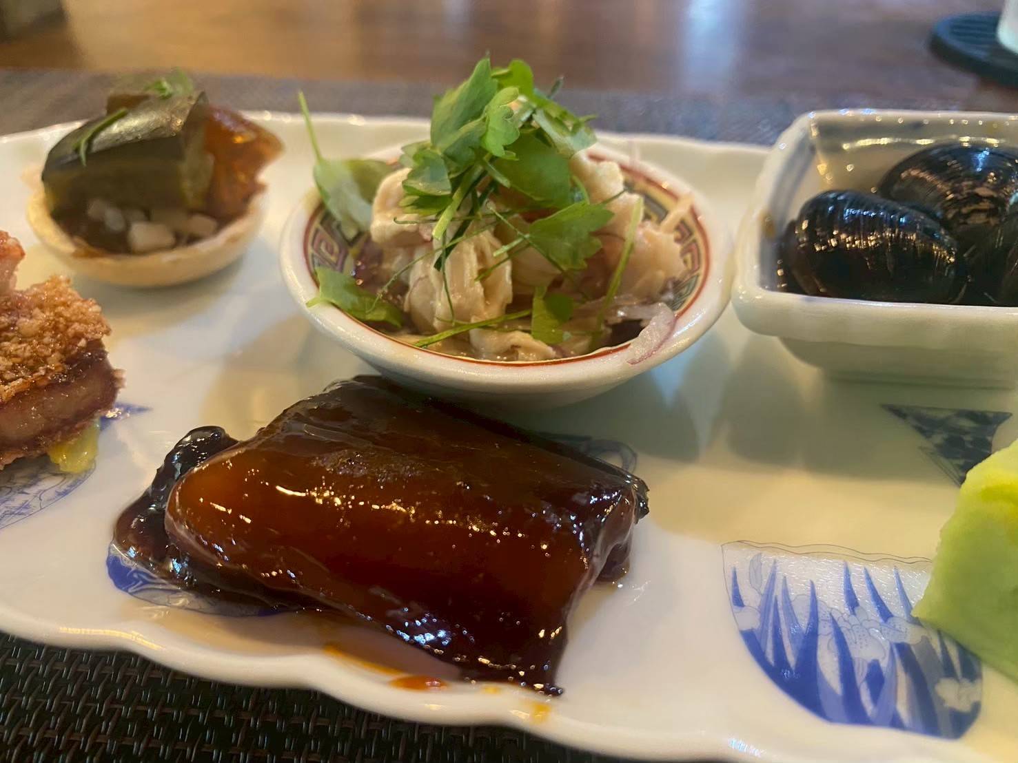 酸薑皮蛋 泰式鶏絲 鹹蜆仔 紅糟肉 紅焼鰻魚 鹹蛋黄豆瓣酥