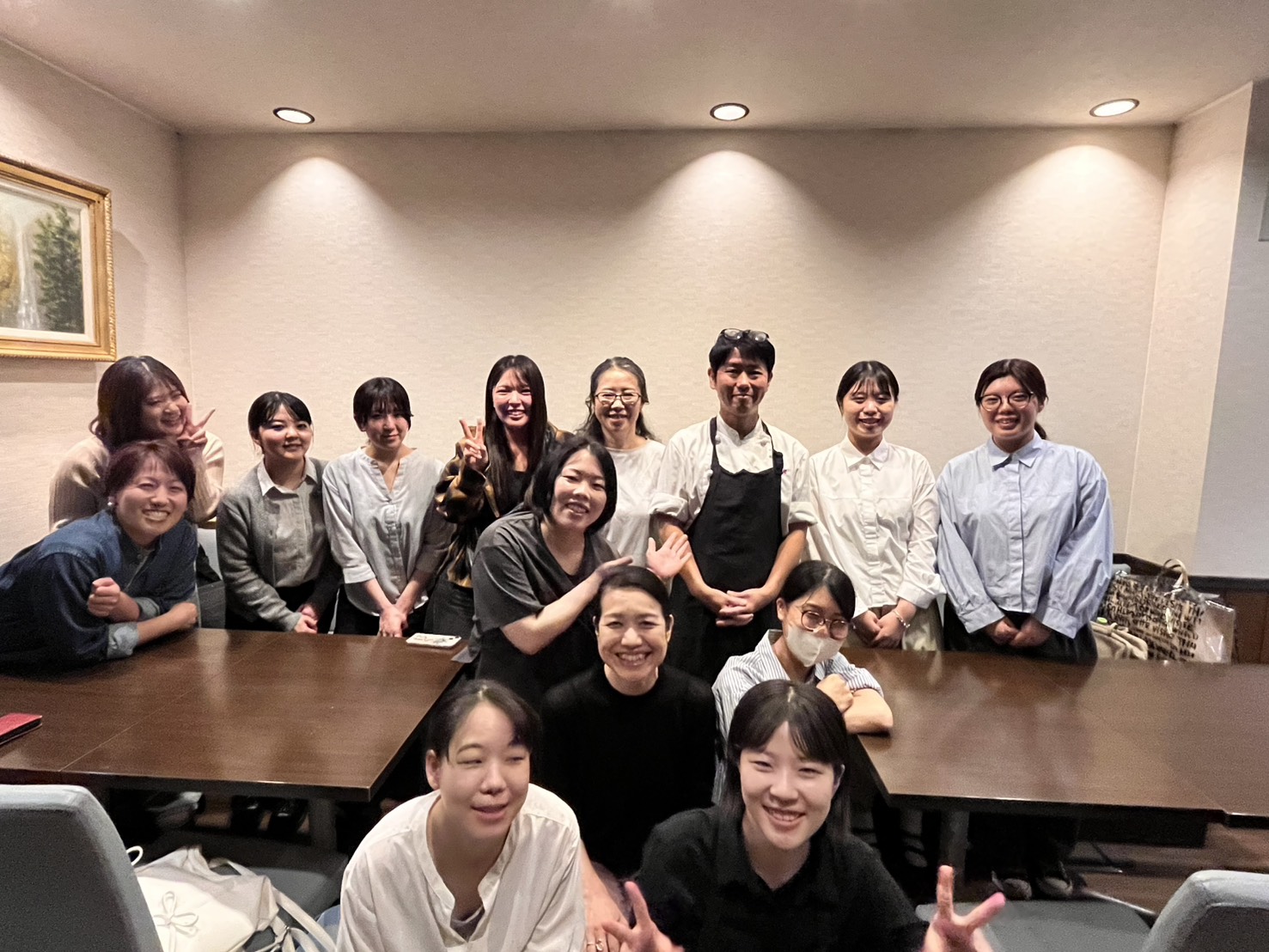 また、今回は3回目でもあり、女子会に興味を持ってくれた外部の方より2名の参加があったことと、日中協の会報で大阪支部の女子会について知ってくれた、日中協高知支部会員のよりぜひ参加したいとのお声をいただき、大阪支部の会員だけでなく、これからを担う若い参加者が増えて情報共有ができるたいへんにぎやかな交流会となりました。